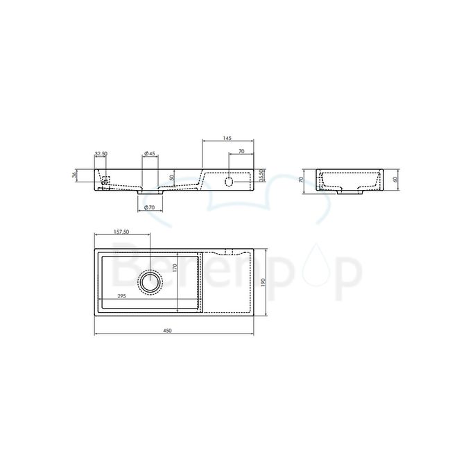 Clou Mini Wash Me CL0303137 keramiek fontein wit 45cm zonder kraangat zonder plug rechts Wandhangend en als opzetfontein te monteren.