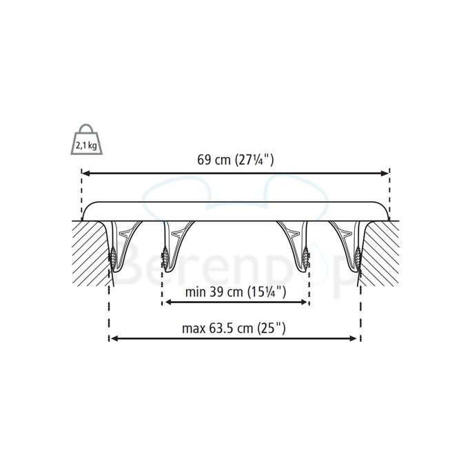 De montageproppen aan de hoeken zijn eenvoudig te monteren en te verstellen doormiddel van een bijgeleverd kunststof muntstuk. Vier anti-slip stroken fixeren de badplank stevig op de badrand. De Etac Fresh is verkrijgbaar in twee breedtematen.
